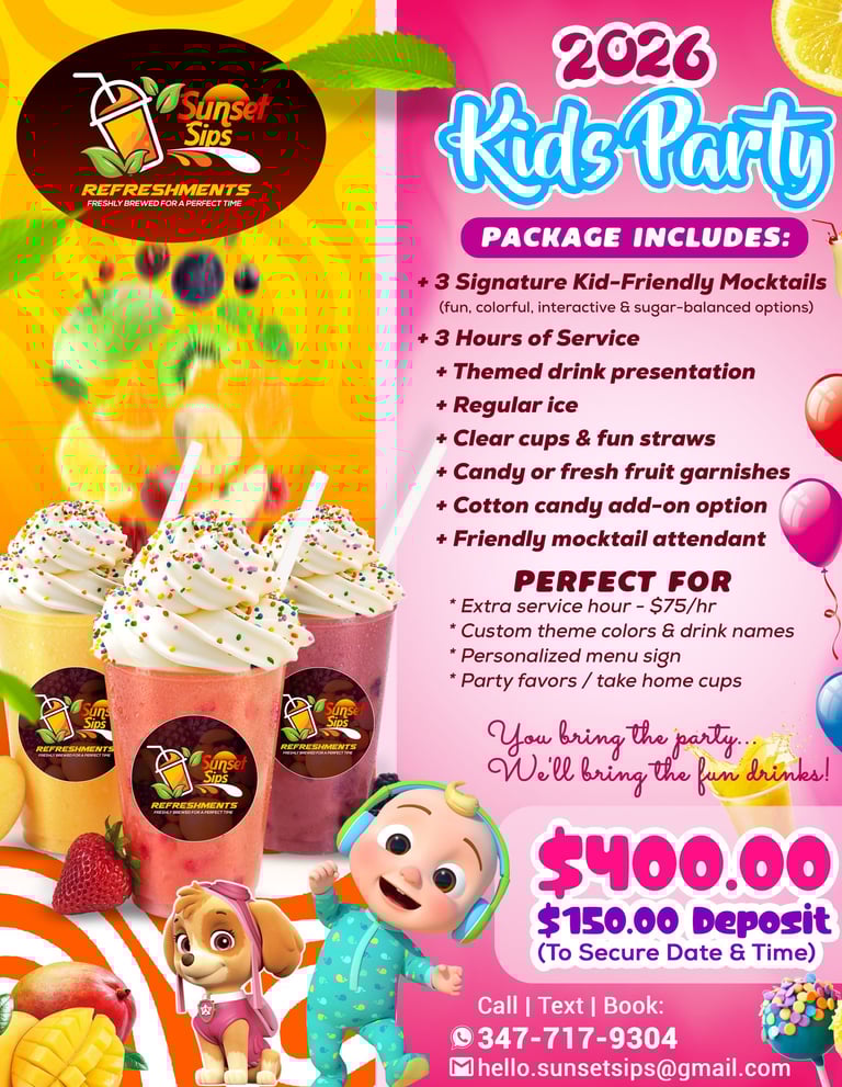 We focus on both fun and health, ensuring that all drinks are made from fresh fruits with little or no added sugar—perfect for parents who want healthier options for their children.
